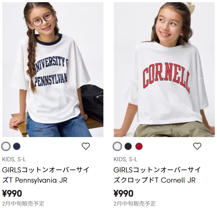 | 2月 | 2026年2月24日(火)発売 TOM and JERRY[トムとジェリー](KIDS) College Collection[カレッジロゴ](MEN / TEEN) |