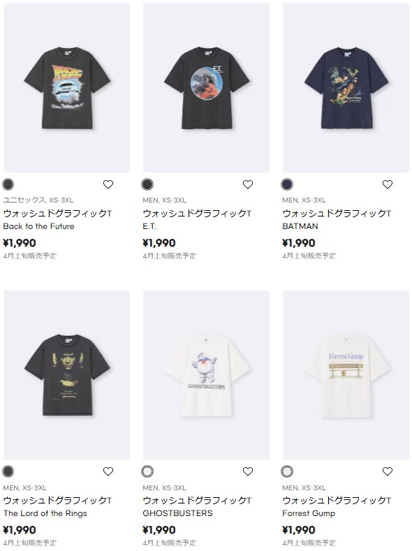 | 4月6日(月) | MOVIE Collection[バックトゥザフューチャー,ET,バットマン,ロードオブザリング,ゴーストバスターズ,フォレストガンプ,グレムリン](MEN / KIDS) |