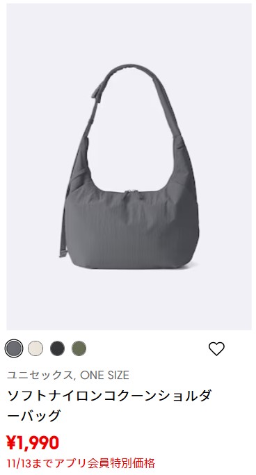 - ソフトナイロンコクーンショルダーバッグ 2990→1990円