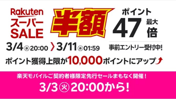 2026年3月4日(水)~3月11日(水)★スーパーセール ※3/3より先行セール