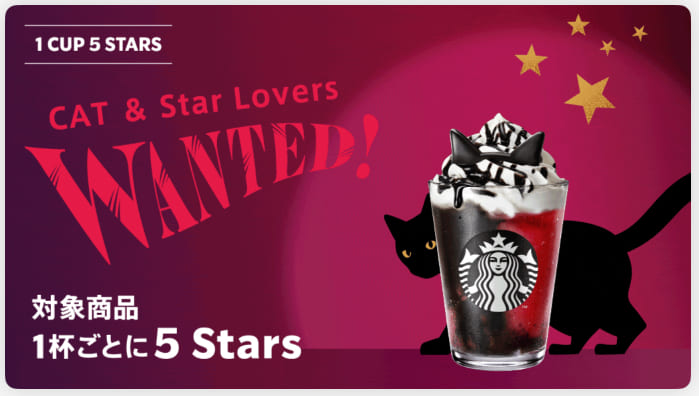 獲得スター | 対象商品1杯につき 5 Stars ※購入数・獲得予定スターに上限はありません |
