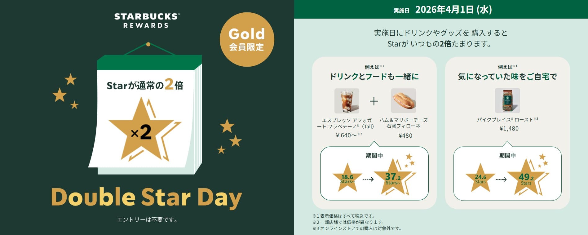 2026年4月~5月のスタバ ダブルスター・ボーナススターは、