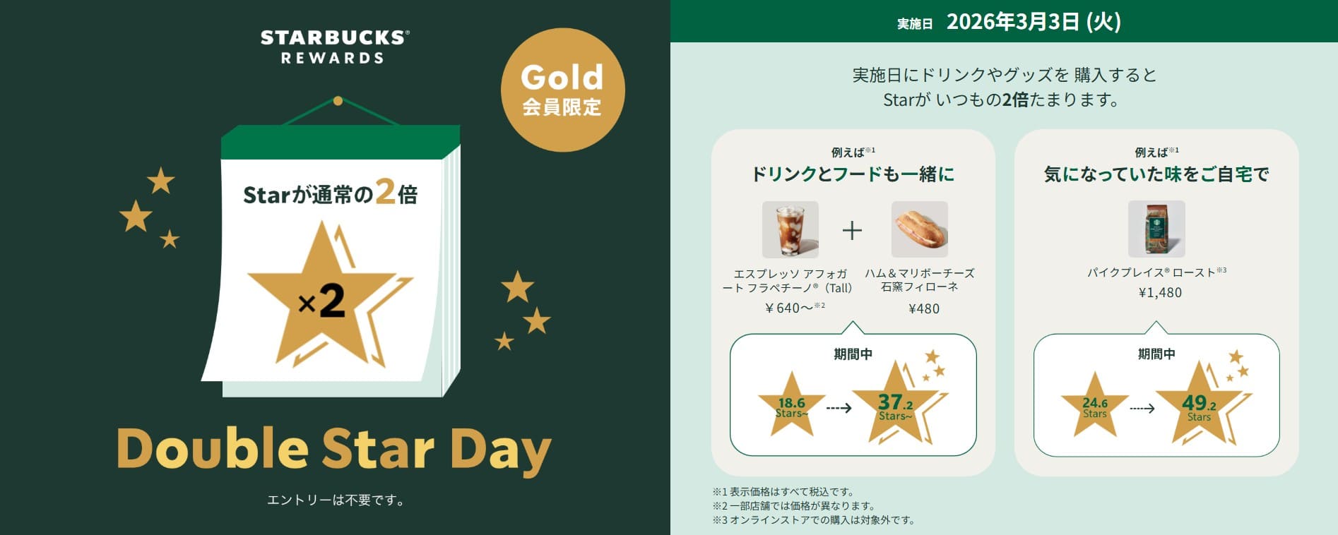 - 2026年2月~3月のスタバ ダブルスター・ボーナススターは?⚡️
