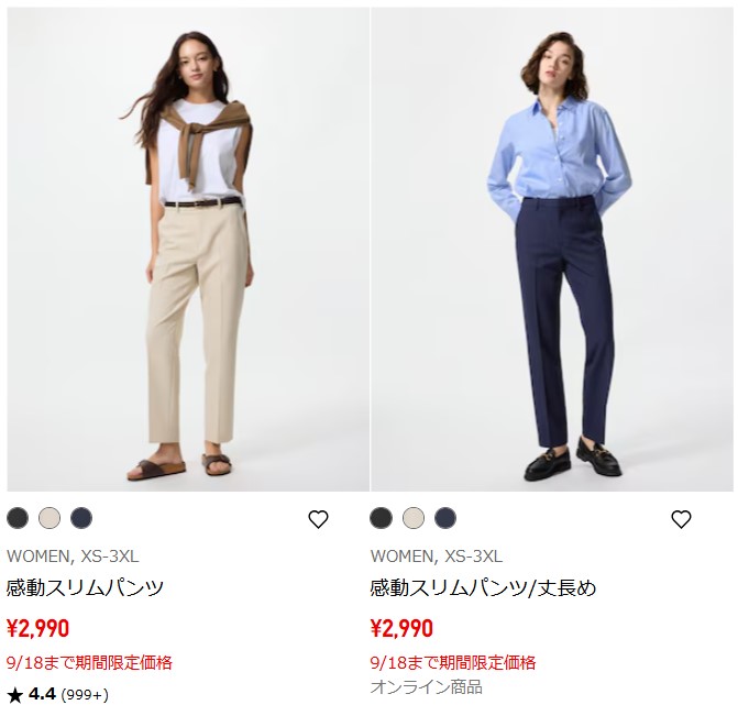 | 2024年6月28日(金)~7月4日(木) 感動スリムパンツ 感動スリムパンツ/丈長め | 2990円 (通常3990円) |