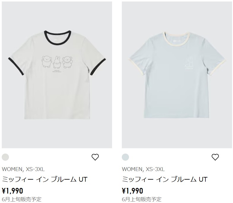 | 6月上旬 | ミッフィー イン ブルーム(WOMEN)※新柄・半袖 レディース👩: UT(半袖)1990円/全2種 |