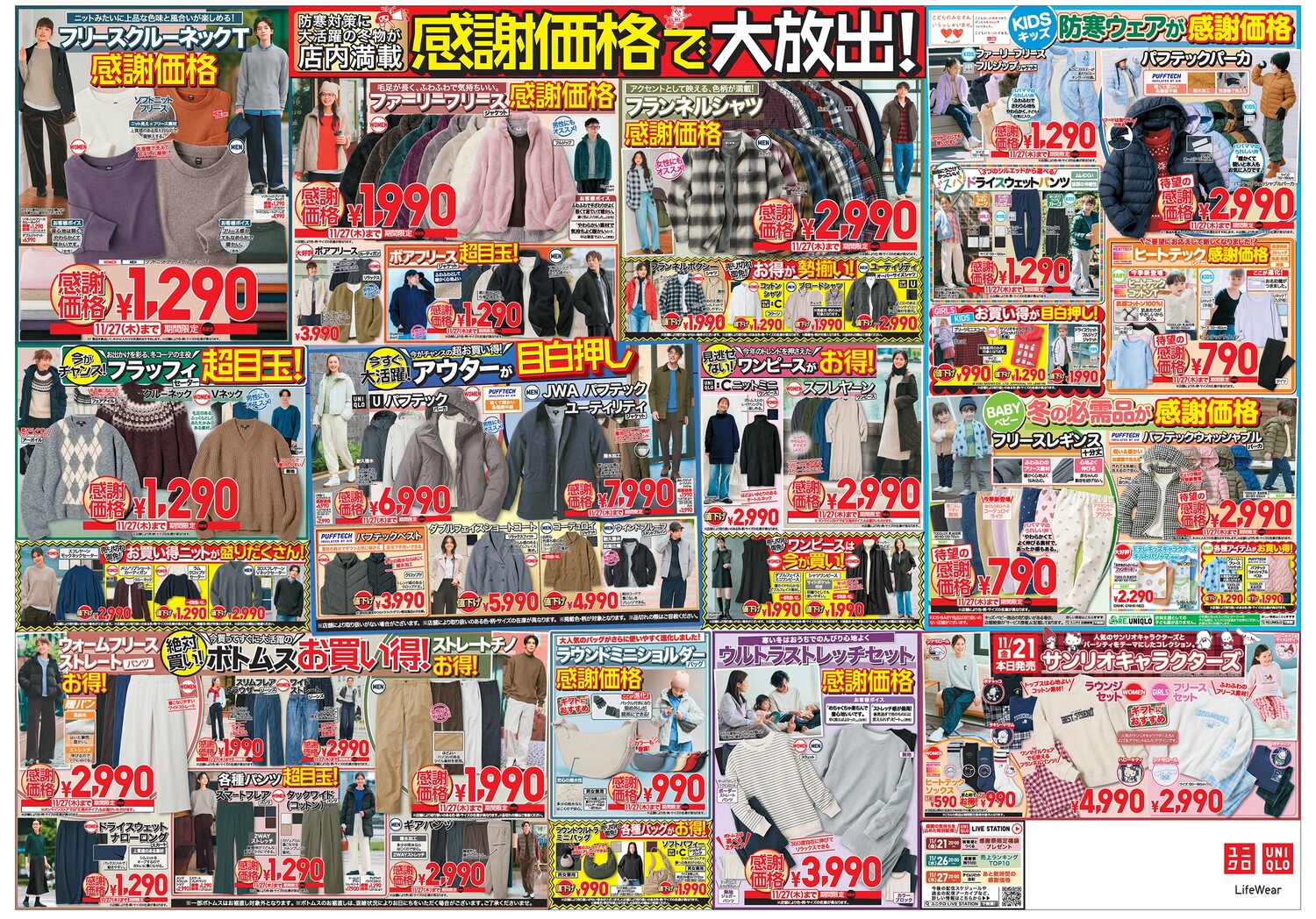 | ヒートテックインナー 1290→990円 極暖ヒートテックインナー 1990→1490円 ヒートテックソックス 590→390円 カシミヤセーター 9990→6990円 3Dコットンセーター 2990→1990円 シームレスダウンパーカ 12900→9990円 ウルトラライトダウンジャケット 6990→4990円 リブハイネックT 1500→990円 レーヨンブラウス 2990→1990円 タックワイドパンツ 3990→2990円 ウルトラストレッチセット 3990→2990円 | 1月1日(水) | 1月3日(金) |